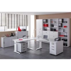 Hammerbacher Schreibtisch U-Serie, Verstellbar, 80 X 68-86 X 80cm, Lichtgrau / Weiß