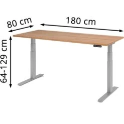 Hammerbacher Schreibtisch XDKB 19, Asteiche, Elektrisch Höhenverstellbar, 180 X 64-129 X 80cm