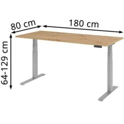Hammerbacher Schreibtisch XDKB 19, Eiche, Elektrisch Höhenverstellbar, 180 X 64-129 X 80cm
