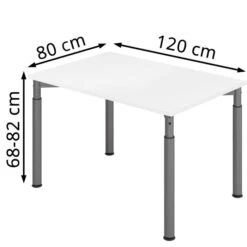 Hammerbacher Schreibtisch Y-Serie, Verstellbar, 120 X 68-82 X 80cm, Weiß / Graphit
