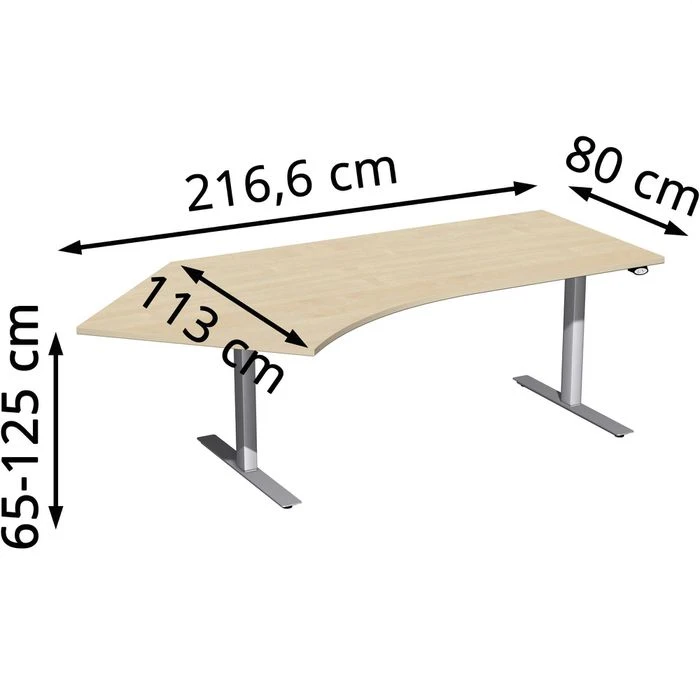 Maße: 216,6 x 65-125 x 80/113 cm (BxHxT)