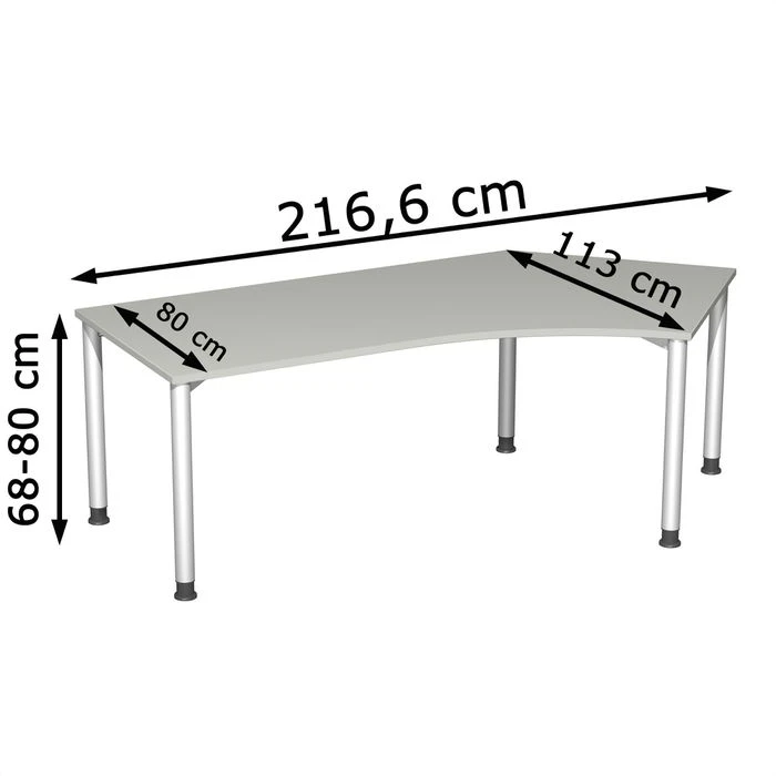 Maße: 216,6 x 68-80 x 80/113 cm (BxHxT)