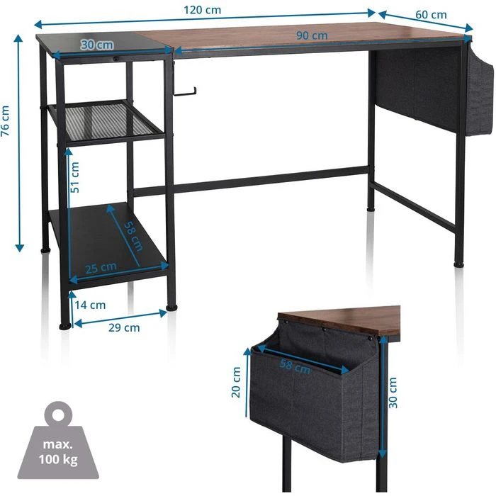 • Organizer-Tasche mit 2 Fächern kann links oder rechts am Tisch angebracht werden