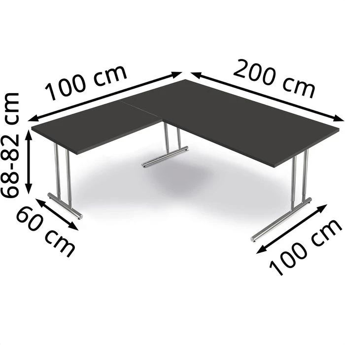 Maße Haupttisch: 200 x 68-82 x 100 cm (BxHxT)
