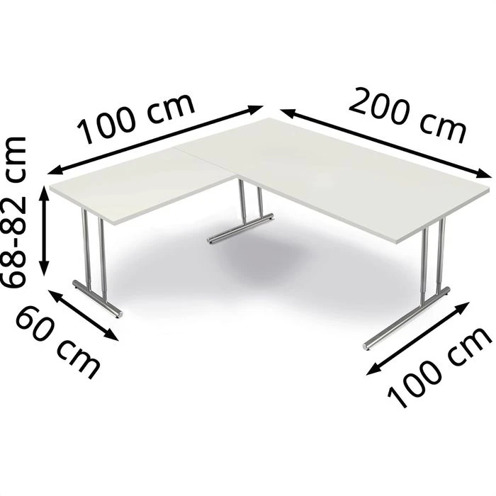 Maße Haupttisch: 200 x 68-82 x 100 cm (BxHxT)