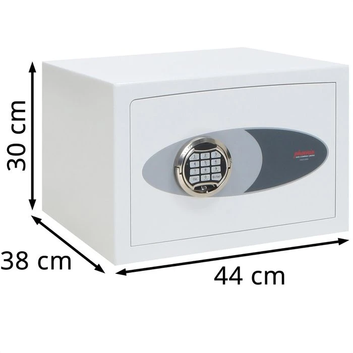 sonstiges: Versicherungsschutz bis 65.000,-€ (privat) bzw. 20.000,-€ (gewerblich) möglich, Hochsicherheitsschloss der VdS-Schlossklasse 1, dreiseitige Verriegelung durch 24 mm starke Riegelbolzen, doppelwandige Konstruktion, 10 mm massive, lasergeschnittene Tür mit innenliegenden Bändern, herausnehmbarer Fachboden, geeignet für die Aufbewahrung von Dokumenten aus Papier und Wertgegenständen sowie Speichermedien, zugelassen als Betäubungsmittel-Tresor und für die Aufbewahrung von Handfeuerwaffen, entspricht dem Deutschen Waffengesetz §36