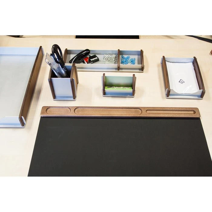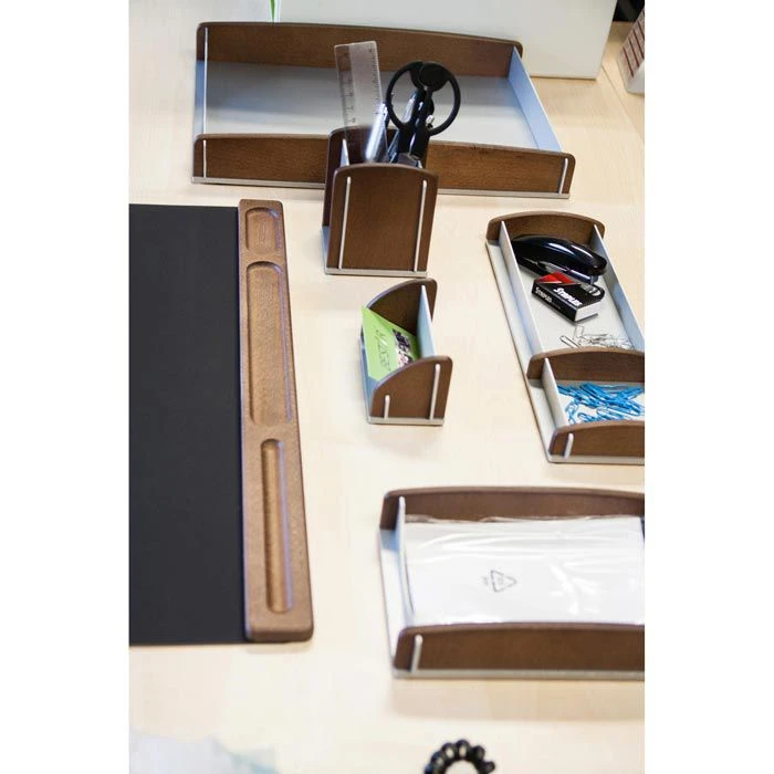 Lieferung: inkl. Briefablage, Stiftehalter, Zettelbox (gefüllt), Schreibunterlage, Visitenkartenhalter, Köcher