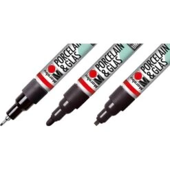 Marabu Porzellanstifte 012300084 Porcelain & Glas, Elegance, Schwarz, 0,8 + 2-4 & 1-2 Mm, 3 Stück