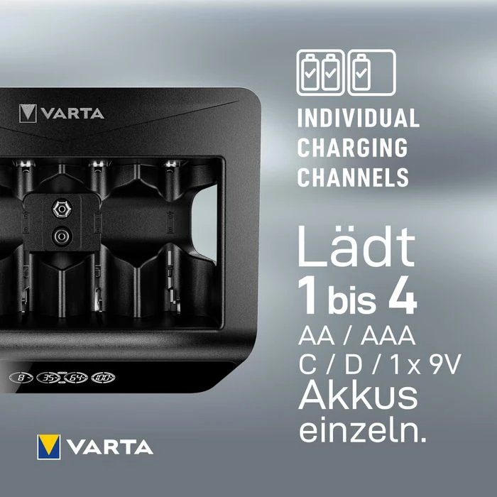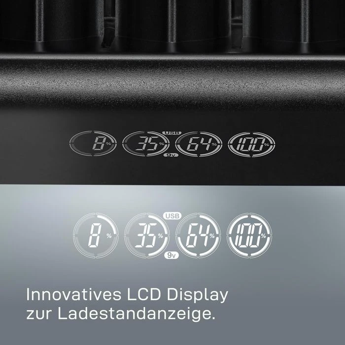 geeignet für: Mignon (AA), Micro (AAA), Baby (C), Mono (D), 9V-Block, universal